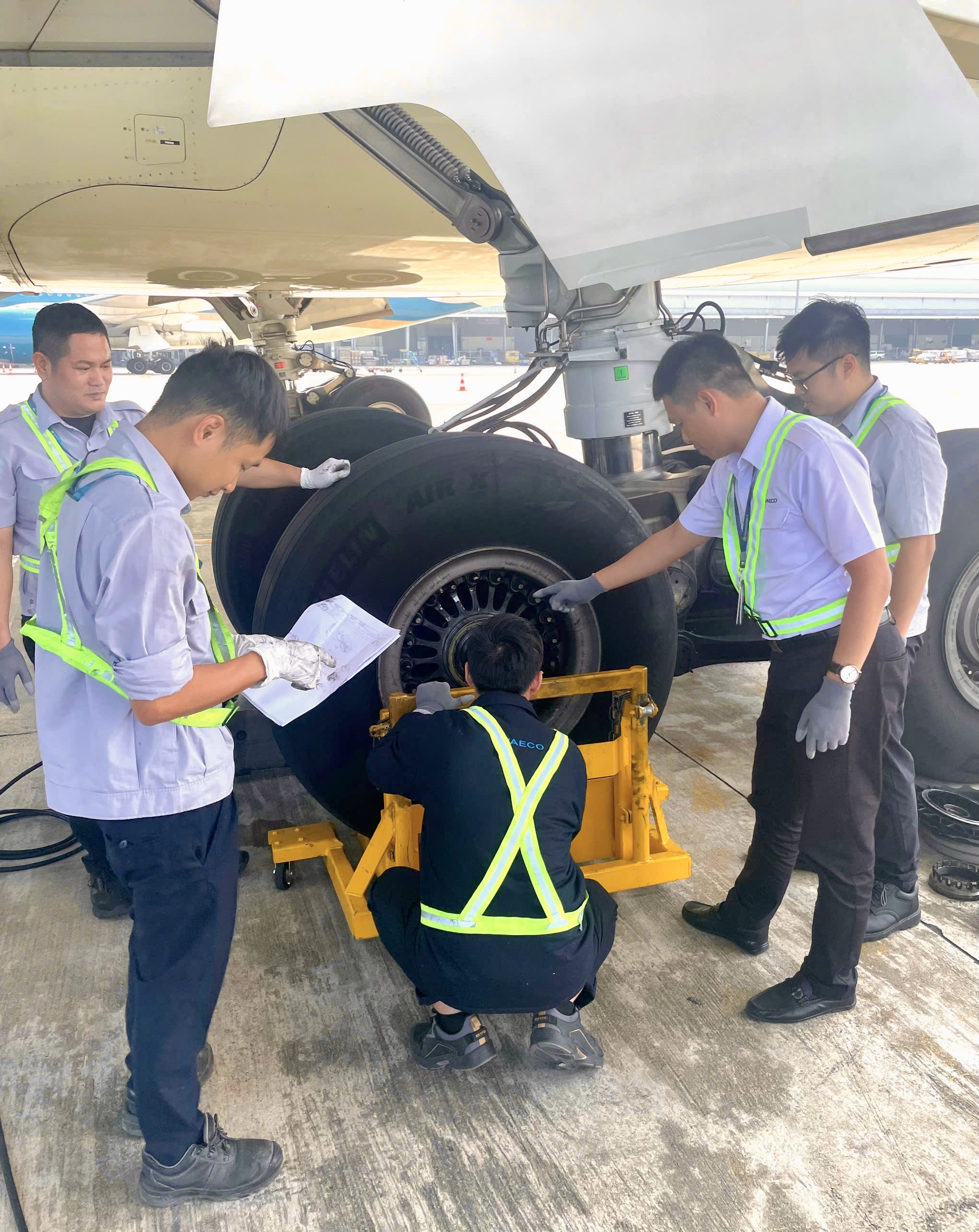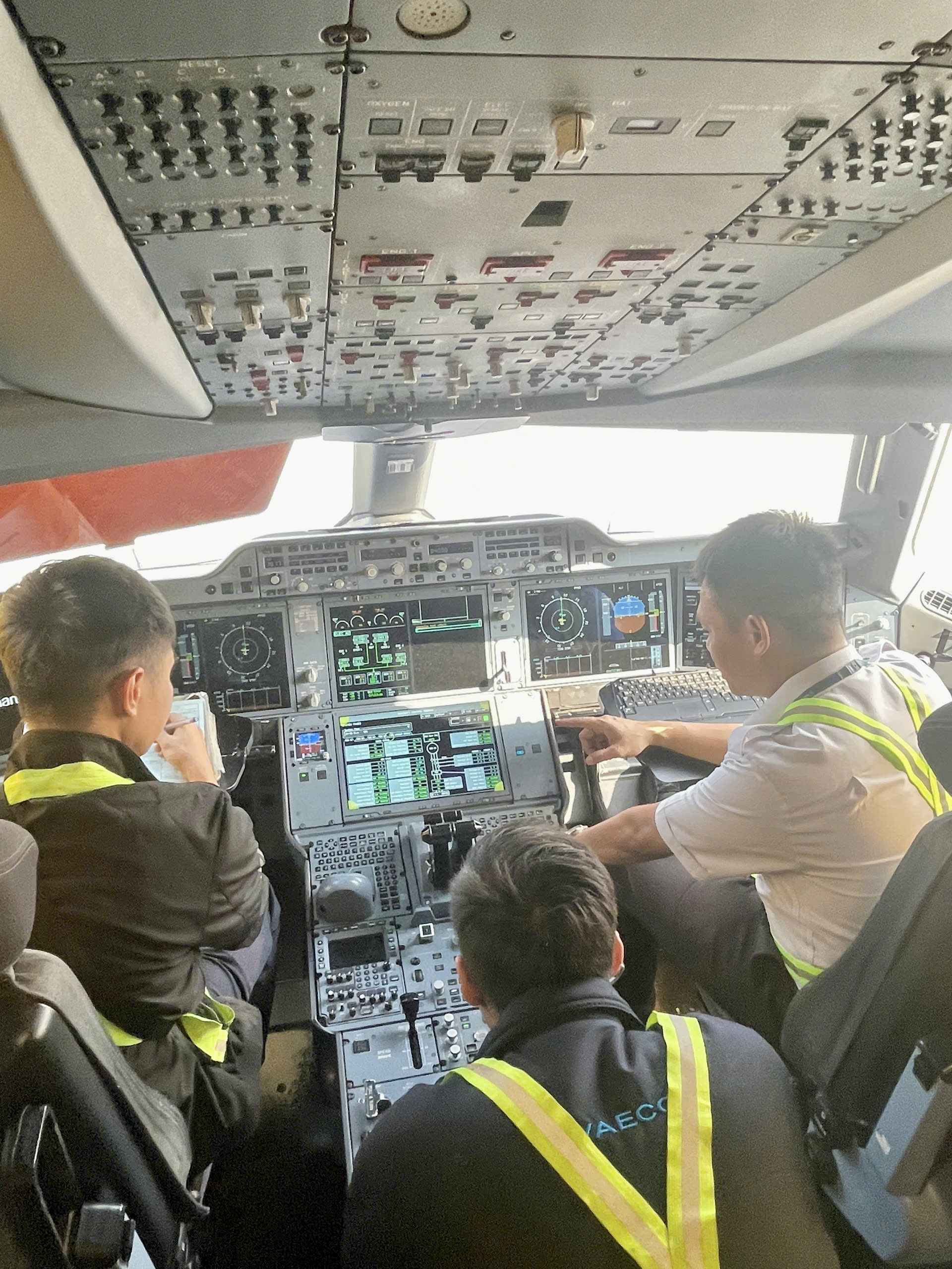 Anh Tiến Nam: Trước mỗi chuyến bay, đội ngũ kỹ thuật phải kiểm tra toàn diện tình trạng tàu bay theo checklist nghiêm ngặt: từ động cơ, điều khiển, thủy lực, điện, điều áp, phanh – lốp, cho đến những chi tiết nhỏ nhất như vết xước hay một con ốc trên panel ngoài. Bất kỳ bất thường nào, dù nhỏ, cũng phải được phát hiện và xử lý trước khi ký xác nhận đủ điều kiện bay và bàn giao cho tổ bay.
