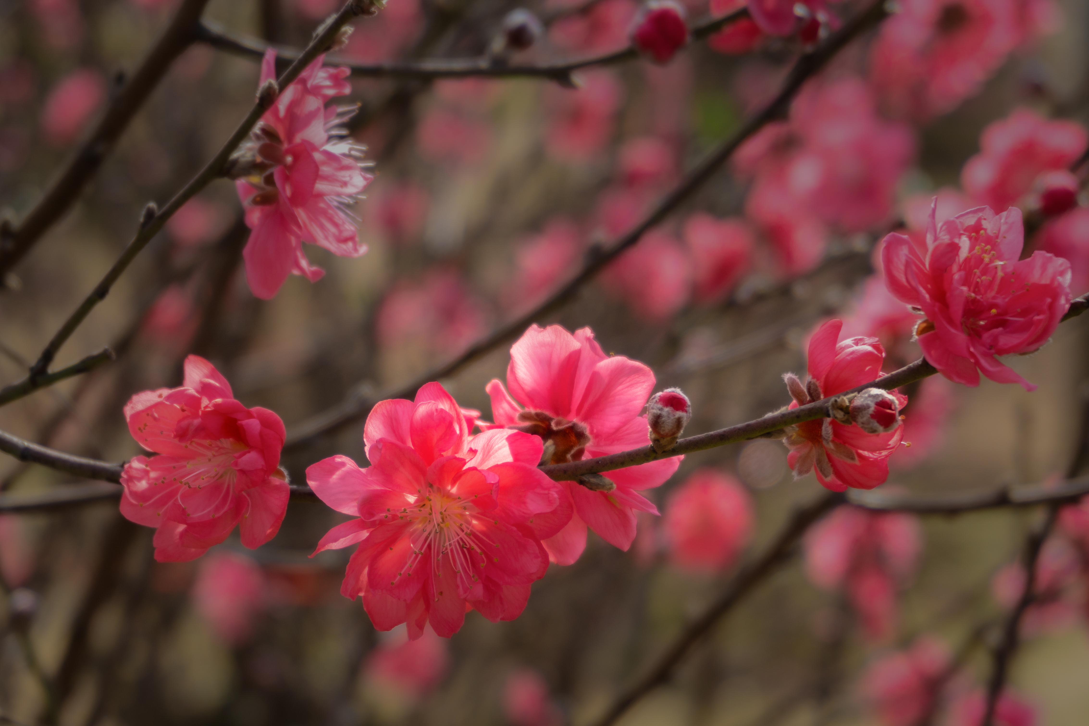 Từ trung tâm thành phố chỉ mất khoảng 15–20 phút chạy xe tới đường Âu Cơ, từ đây có nhiều lựa chọn: đi qua các con ngõ dẫn lối thẳng ra vườn như ngõ 264, ngõ 374, ngõ 464 đường Âu Cơ tới làng đào Nhật Tân – làng trồng hoa đào lớn nhất; hoặc đi dưới chân cầu Nhật Tân qua ngõ 16 An Dương Vương để tới làng đào Phú Thượng. Phố xá đông đúc, ngột ngạt như bị bỏ lại phía sau, làng đào Nhật Tân mở ra một khung cảnh hoàn toàn khác: cả một vùng đất rộng lớn ngập tràn trong màu hồng thắm và hồng phai của hàng ngàn gốc đào đang bung nở rực rỡ, trong không khí háo hức của người đi mua và ngắm đào, tiếng cười nói vang vọng, và hương phấn hoa thoảng bay trong gió. Tất cả tạo nên sự tươi mới, báo hiệu cho một mùa xuân đang tới gần.