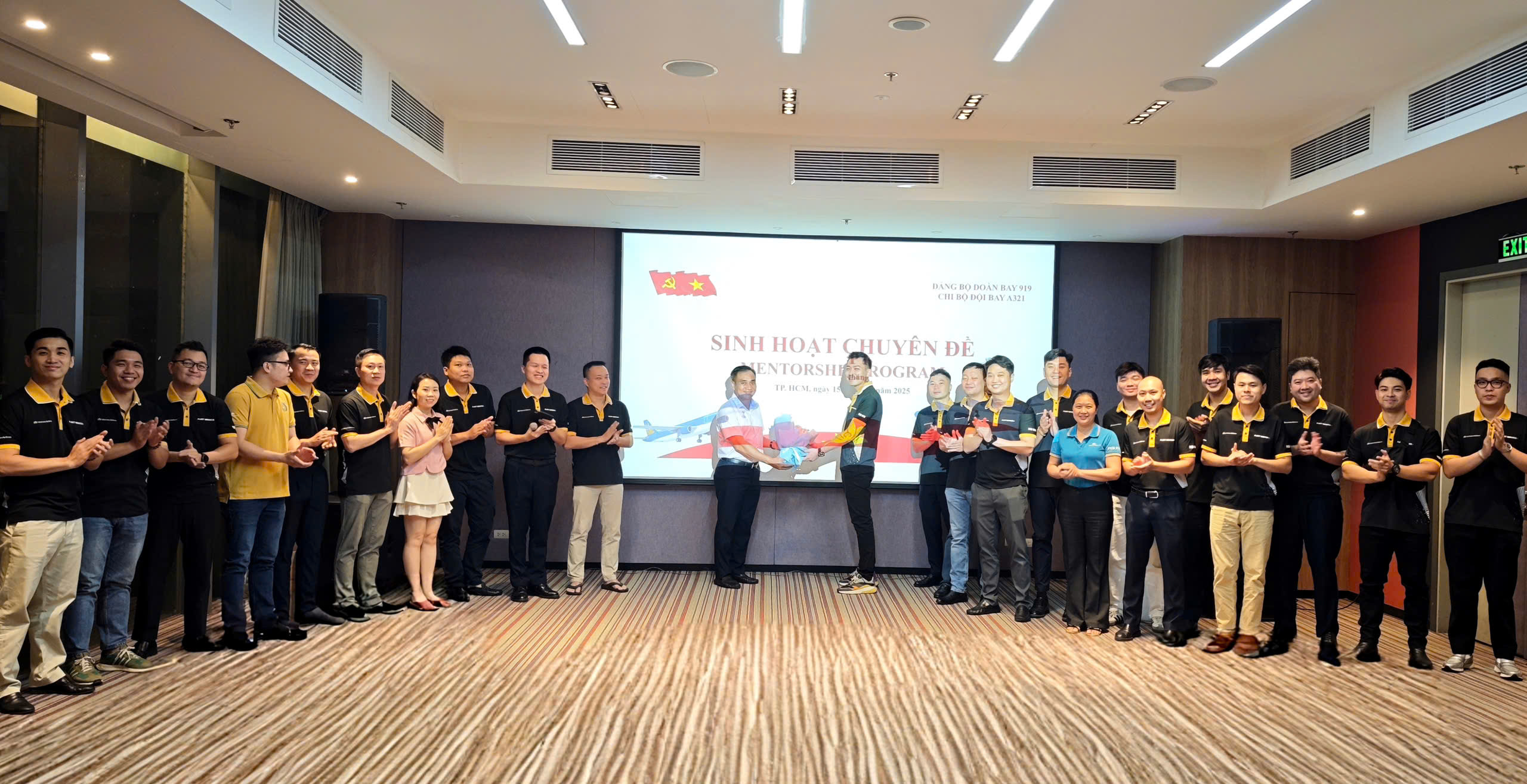 Xuất phát từ thực tiễn phát triển nhanh chóng của lực lượng phi công Đội bay A321, song song với thách thức trong việc truyền thụ kinh nghiệm giữa các thế hệ, Chi bộ Đội bay A321 đã lựa chọn chuyên đề “Mentorship Program – Đồng hành phát triển” làm trọng tâm của sinh hoạt quý này.