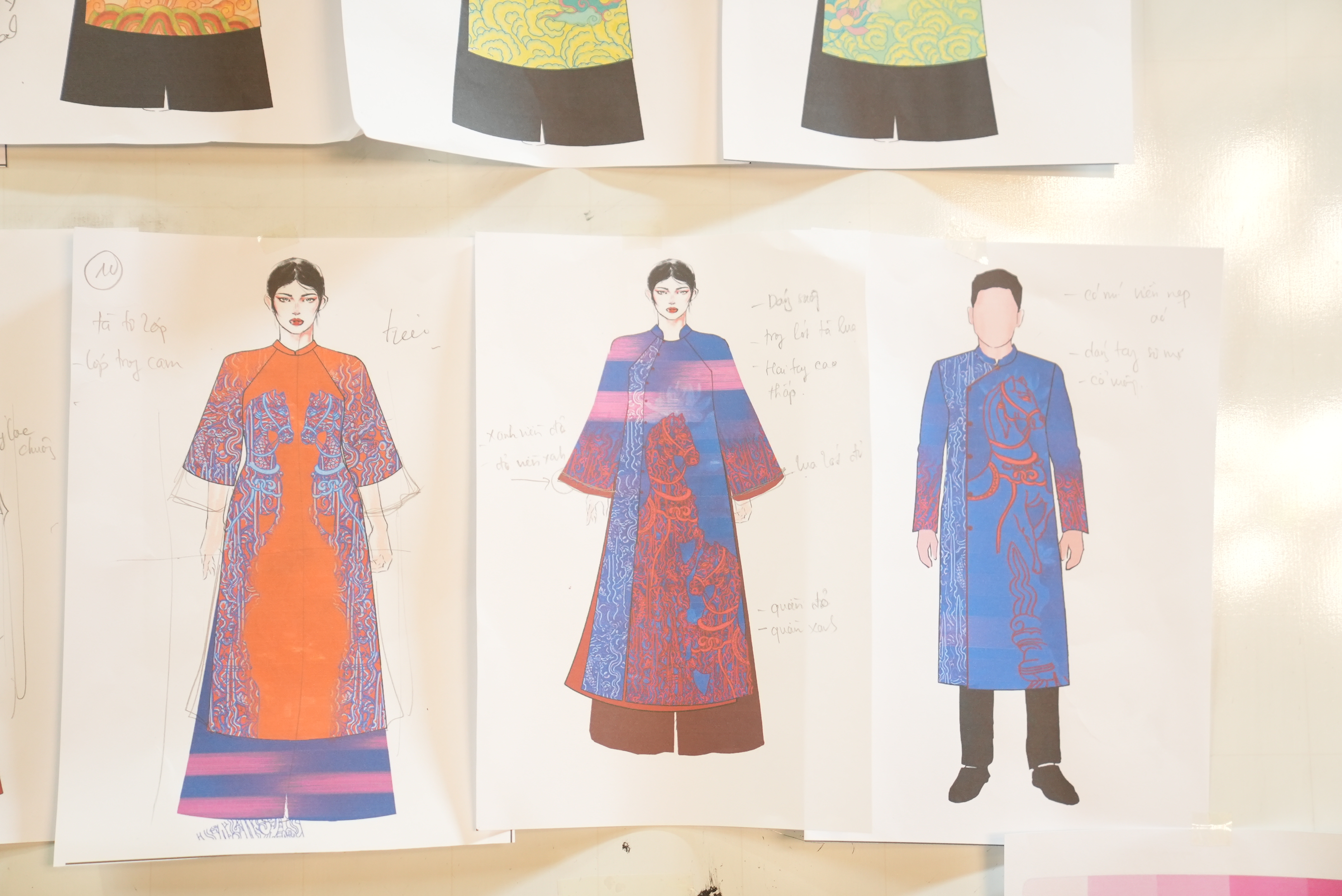Bảng màu rực rỡ với đỏ, cam, lam đan xen các gam hồng, kem, xanh cốm mang lại cảm giác tươi mới, ngọt ngào và tràn đầy sinh khí mùa xuân. Chất liệu tơ, lụa mềm cùng phom dáng suông hiện đại giúp tà áo vừa thướt tha vừa đảm bảo sự thoải mái cho tiếp viên trong suốt hành trình phục vụ.