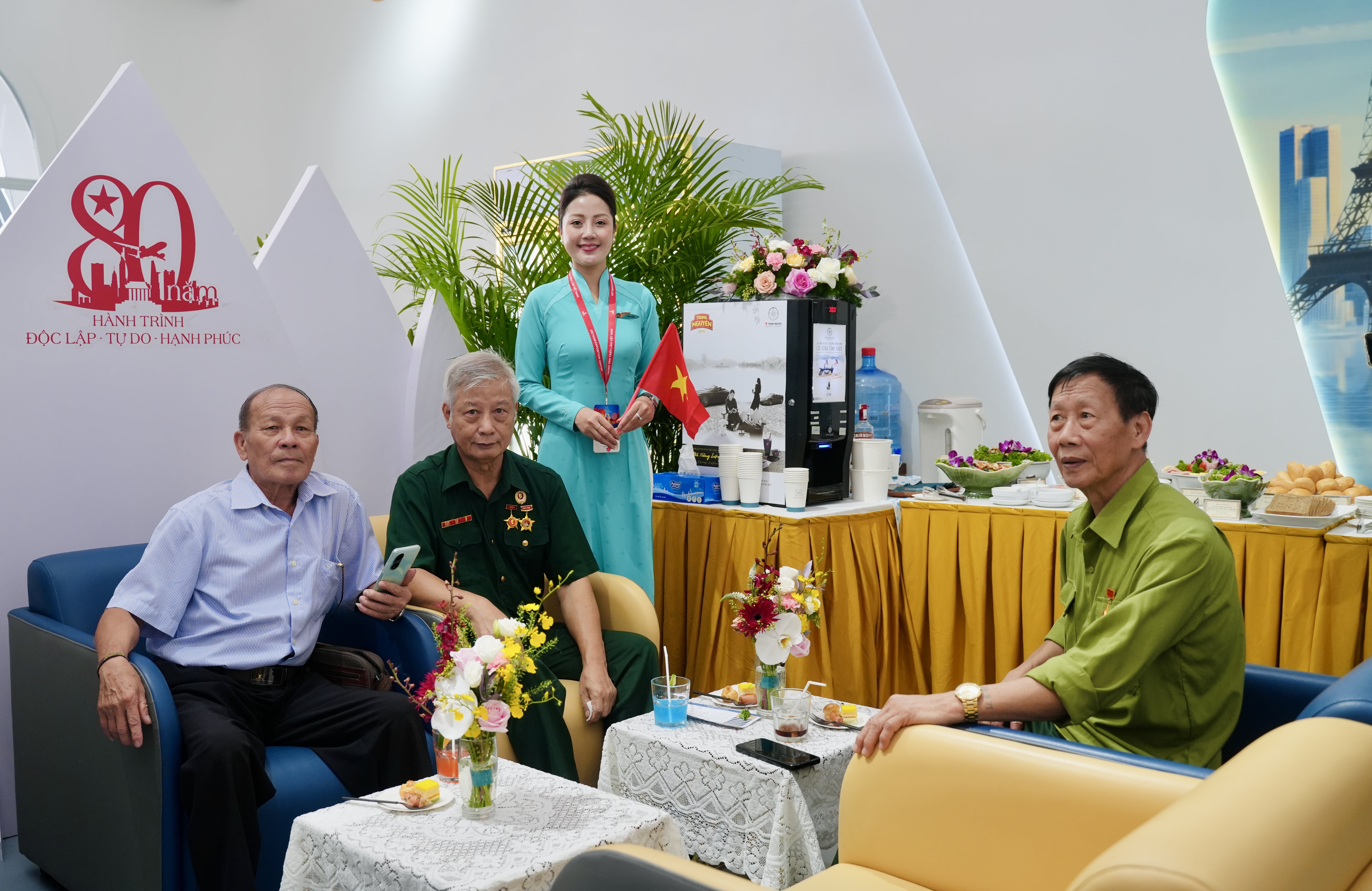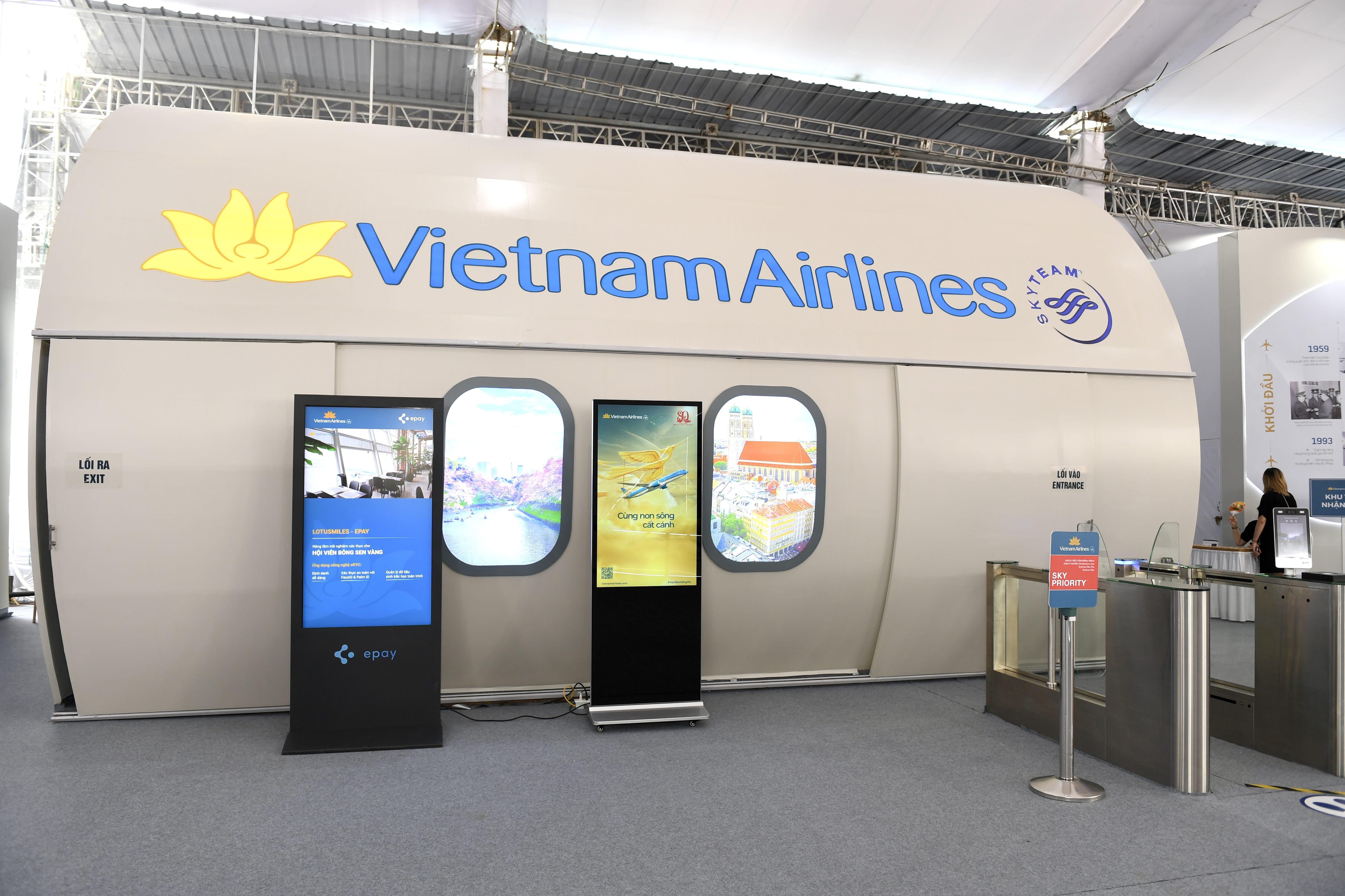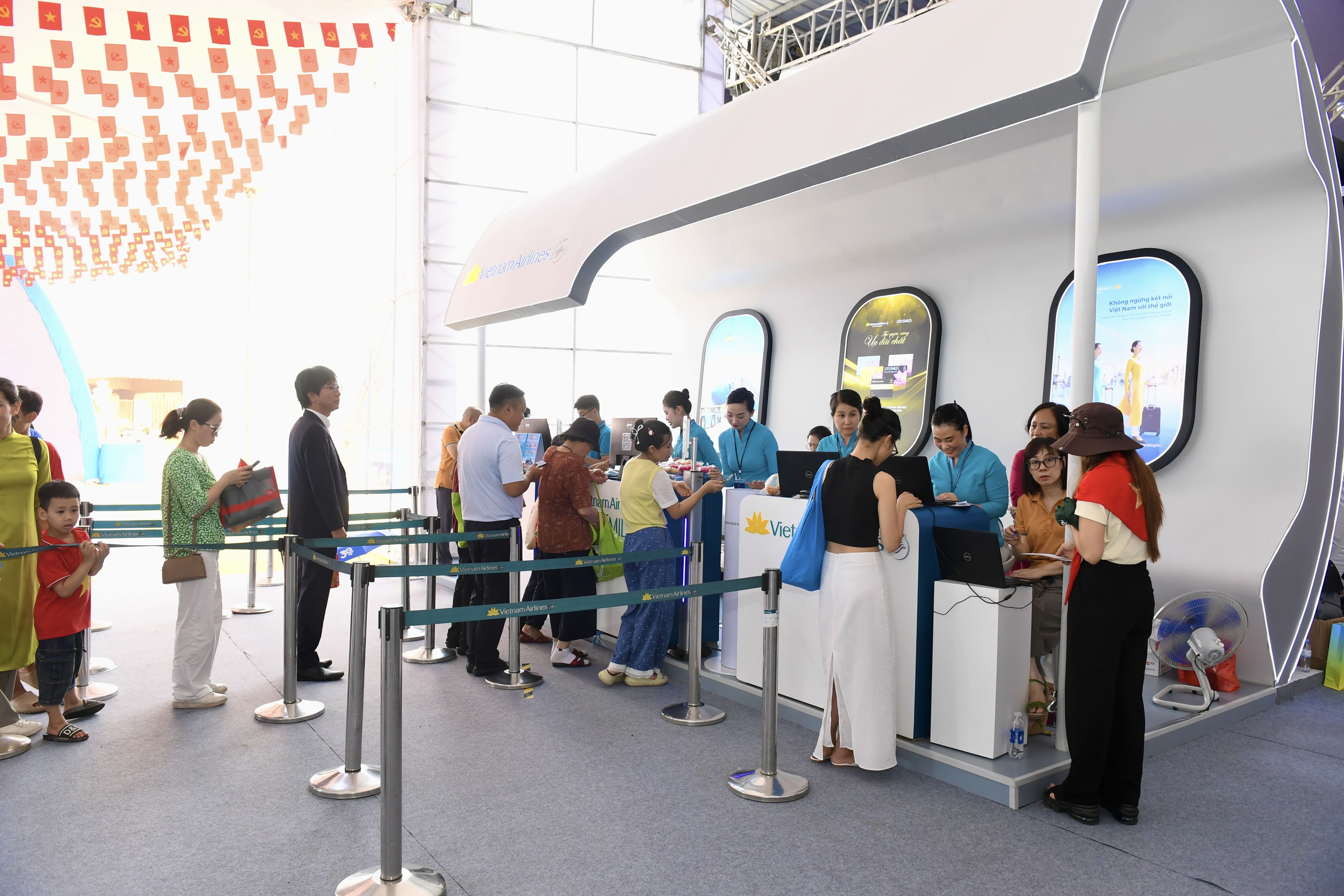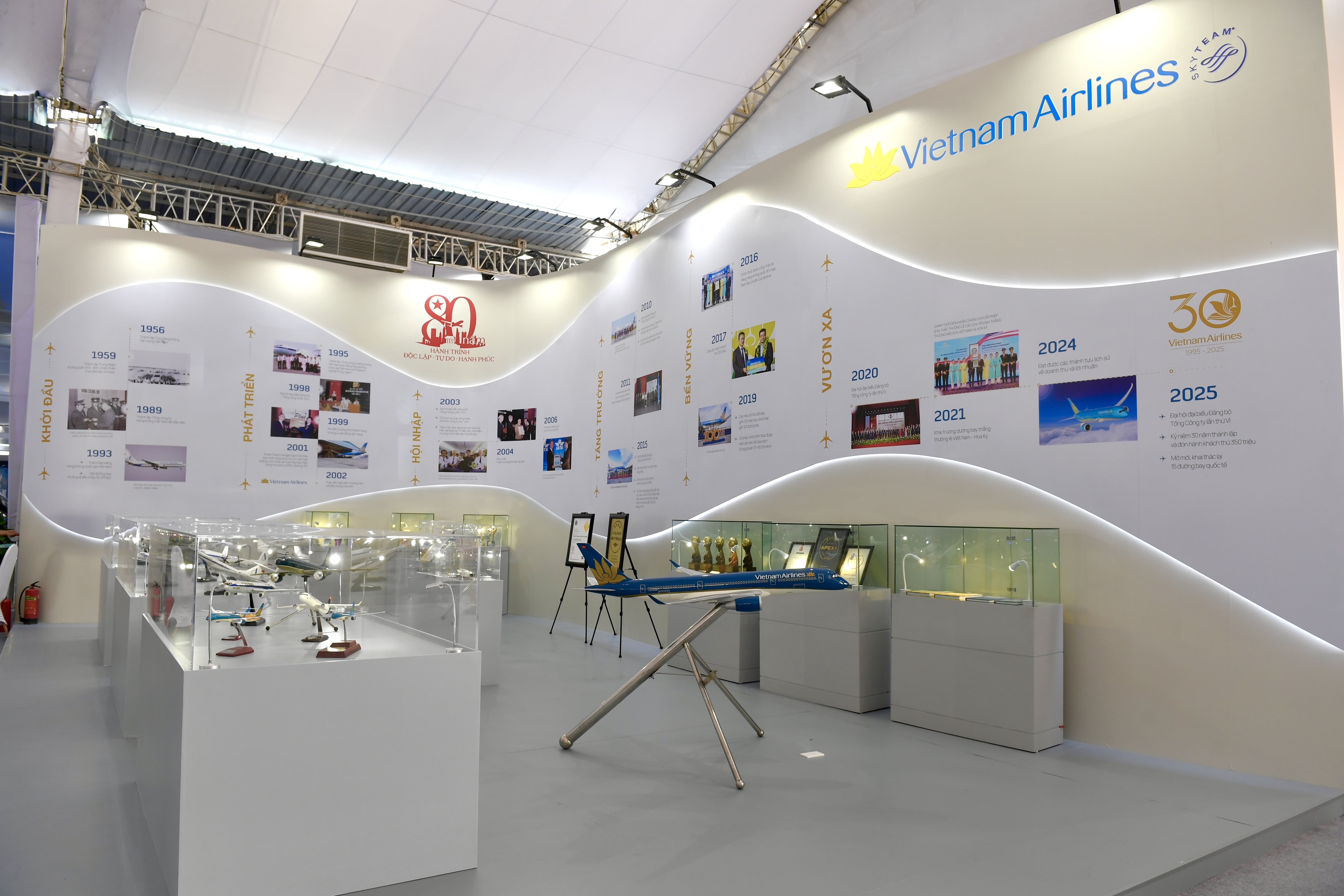 Tại Triển lãm “80 năm hành trình Độc lập – Tự do – Hạnh phúc” diễn ra từ ngày 28/8 đến 5/9 tại Trung tâm Hội chợ Triển lãm Quốc gia (Đông Anh, Hà Nội), Vietnam Airlines mang đến không gian trưng bày “Khát vọng bầu trời” với diện tích hơn 1.500 m². Gian triển lãm tái hiện hành trình nửa thế kỷ của Hãng Hàng không Quốc gia cùng nhiều hiện vật độc đáo, trải nghiệm công nghệ hiện đại và dấu ấn thương hiệu, để cùng nhìn lại hành trính cất cánh gắn liền với sự phát triển của đất nước.