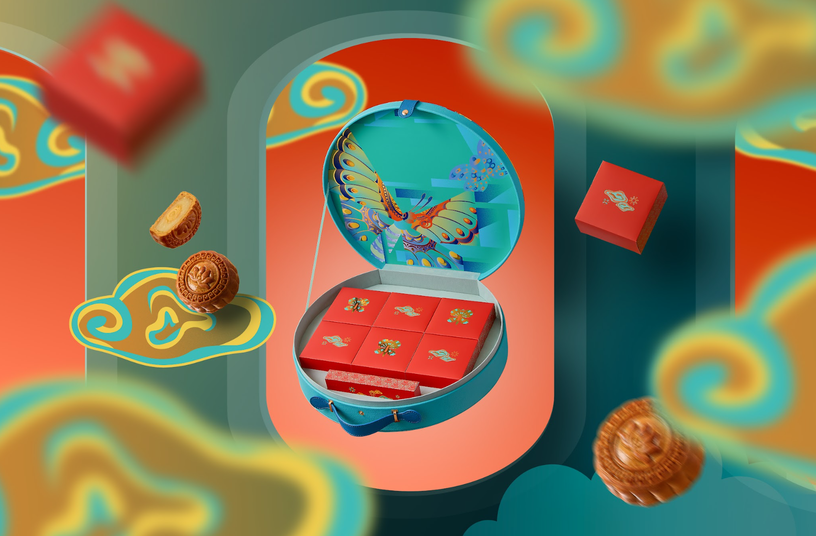 Chỉ cần chạm mắt vào thiết kế, bạn đã có thể cảm nhận được sự lay động của trăm loài bướm dưới ánh trăng thu. Những cánh bướm ánh kim mở ra như đôi cánh máy bay sải qua tầng mây, mang theo linh khí của đất trời và hơi thở của đổi thay. Đó không chỉ là một hộp bánh, mà còn là biểu tượng của niềm tin vào khởi đầu mới, của tinh thần lạc quan, của ước mơ bung nở.