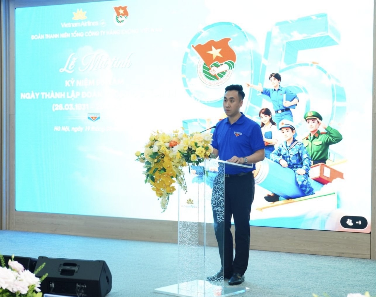 Mở đầu chương trình, đồng chí Nguyễn Văn Thành – Bí thư Đoàn Thanh niên TCT đã đọc diễn văn kỷ niệm 95 năm Ngày thành lập Đoàn TNCS Hồ Chí Minh. Đồng chí kêu gọi mỗi đoàn viên, thanh niên Vietnam Airlines không ngừng rèn luyện, nâng cao bản lĩnh, trình độ chuyên môn và năng lực làm chủ công nghệ mới theo tiêu chuẩn quốc tế; phát huy tinh thần sáng tạo, dám nghĩ, dám làm, mạnh dạn đề xuất những ý tưởng đột phá nhằm nâng cao chất lượng dịch vụ và hiệu quả hoạt động.