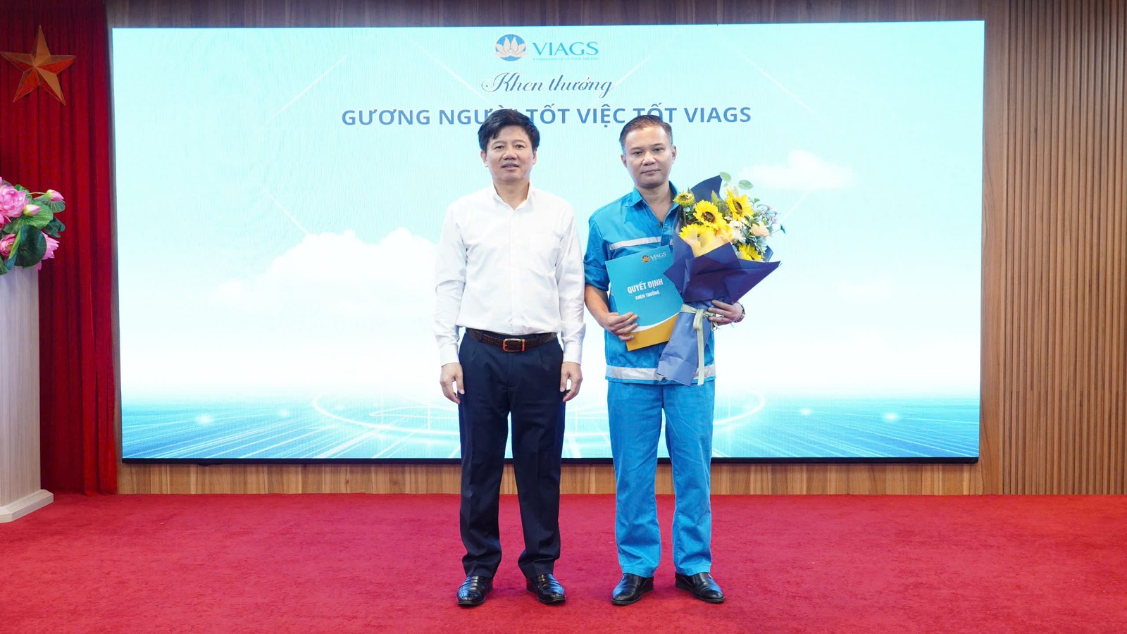 Cũng tại buổi lễ, PGĐ CN Phạm Ngọc Hương đã trao phần thưởng và tặng hoa chúc mừng cho cá nhân “Gương người tốt, việc tốt của VIAGS” tháng 10/2025: