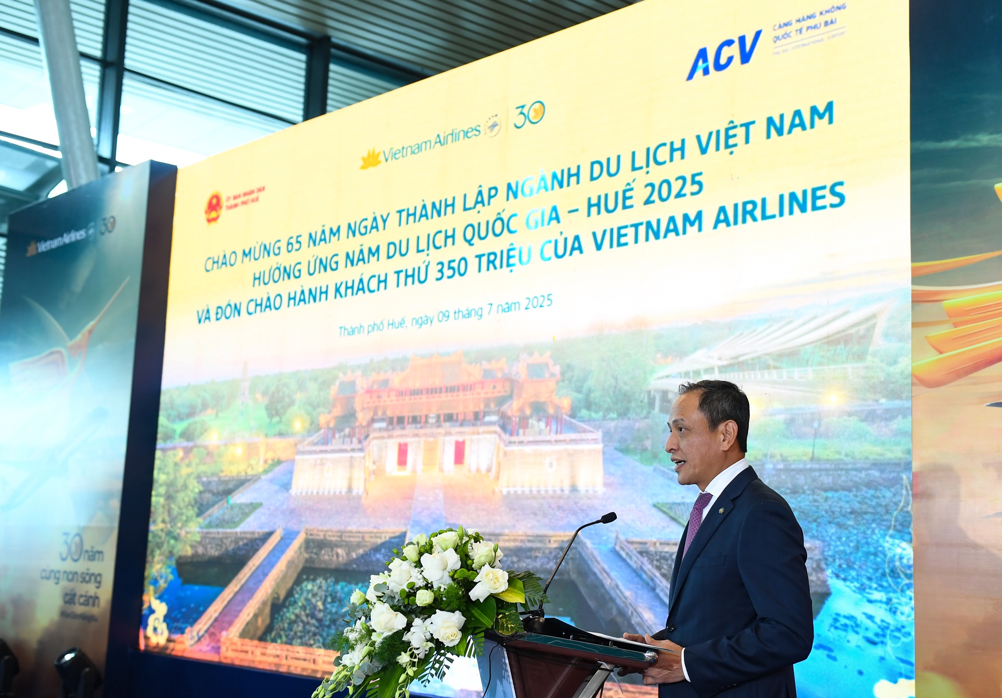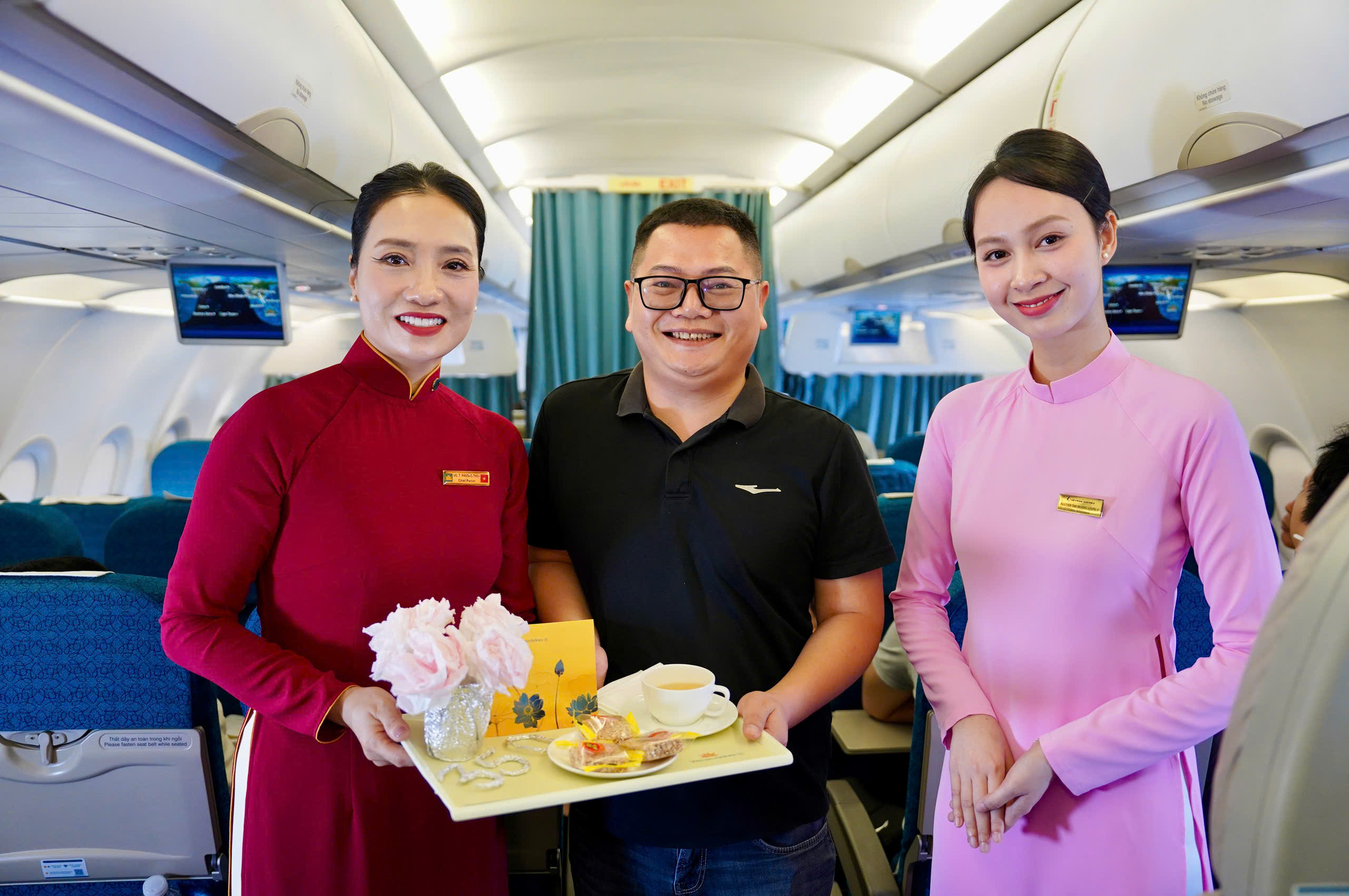 Hành khách thứ 350 triệu đi trên chuyến bay VN1541 từ Hà Nội đến Huế, hạ cánh lúc 9h sáng ngày 9/7, đúng dịp kỷ niệm 65 năm ngày truyền thống ngành Du lịch Việt Nam và chào mừng Năm du lịch Quốc gia 2025.