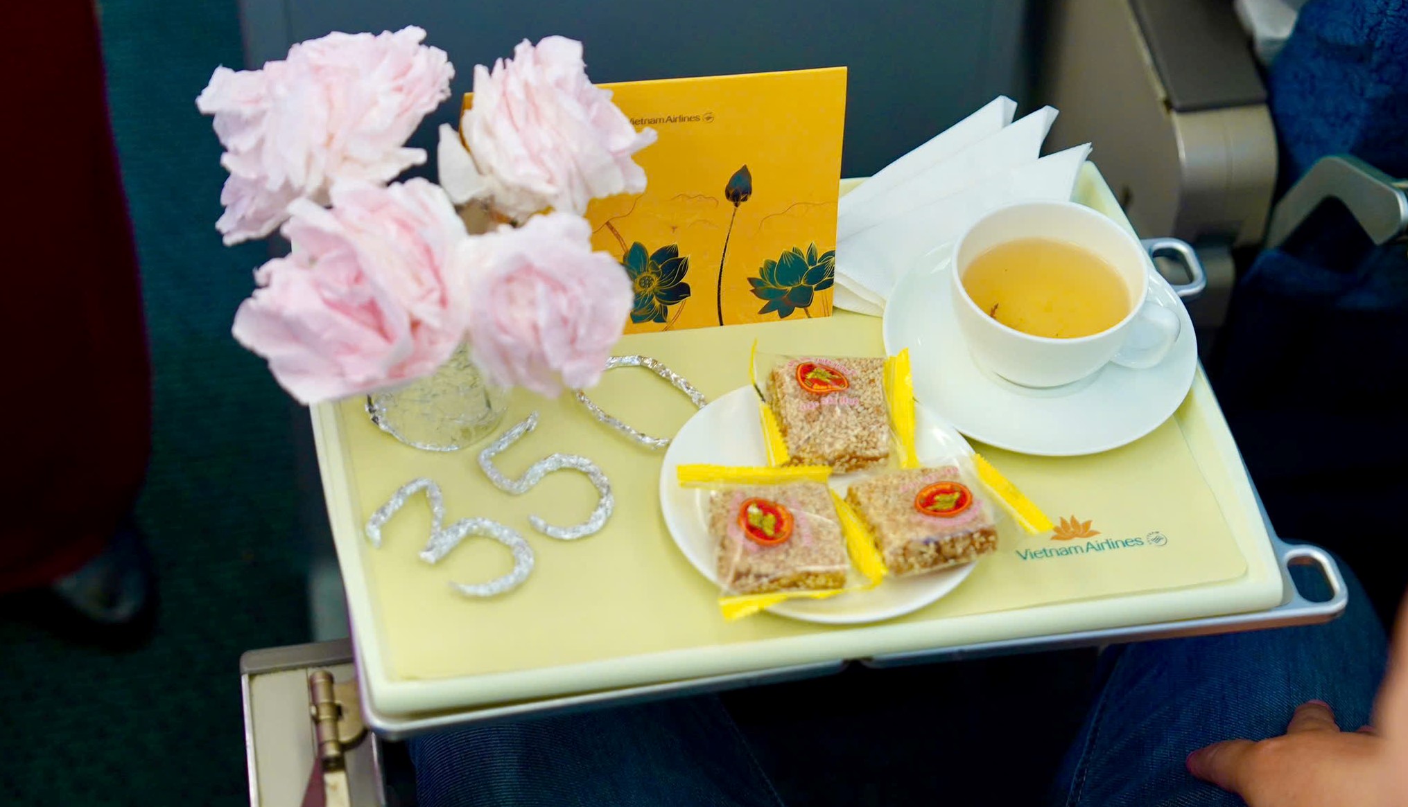 Tại buổi lễ, hành khách thứ 350 triệu được tặng thẻ Bông Sen Vàng hạng Bạch Kim, 02 vé khứ hồi nội địa hạng Thương gia và quà lưu niệm. Mười hành khách may mắn thứ 349.999.995 đến 350.000.005 nhận vé khứ hồi nội địa hạng Phổ thông, toàn bộ hành khách trên chuyến bay được tặng quà mang hình ảnh thương hiệu của Vietnam Airlines và mang đậm bản sắc Huế như lời chào nồng hậu từ đất Cố đô…