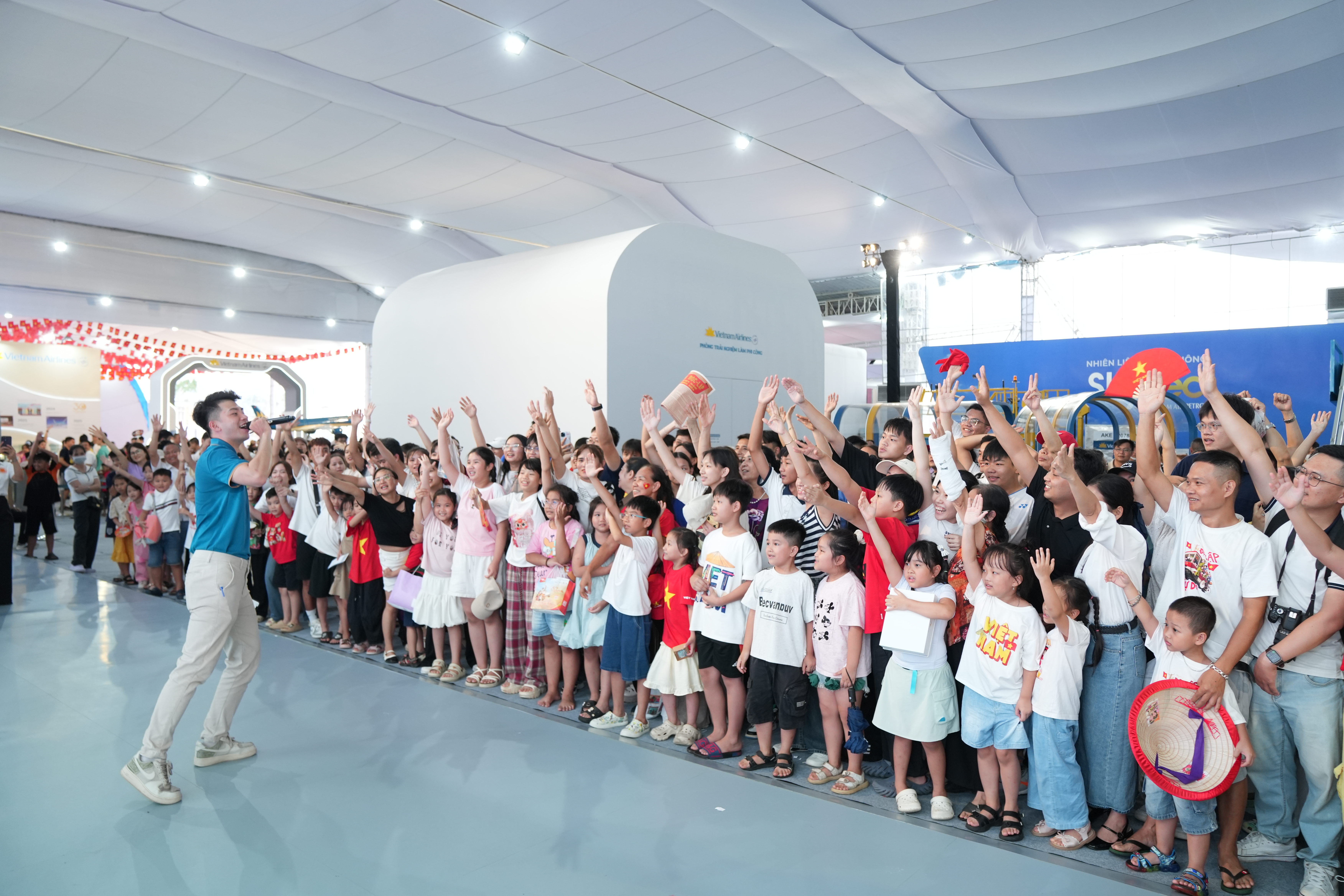 Đặc biệt hơn, hàng nghìn khách tham quan thực sự ấn tượng khi tham gia trải nghiệm cảm giác cất cánh, hạ cánh trong buồng lái mô phỏng Airbus A320/321 hoặc khám phá khoang khách mô phỏng máy bay thân rộng với dịch vụ Internet trên không và hệ thống giải trí hiện đại của Vietnam Airlines.