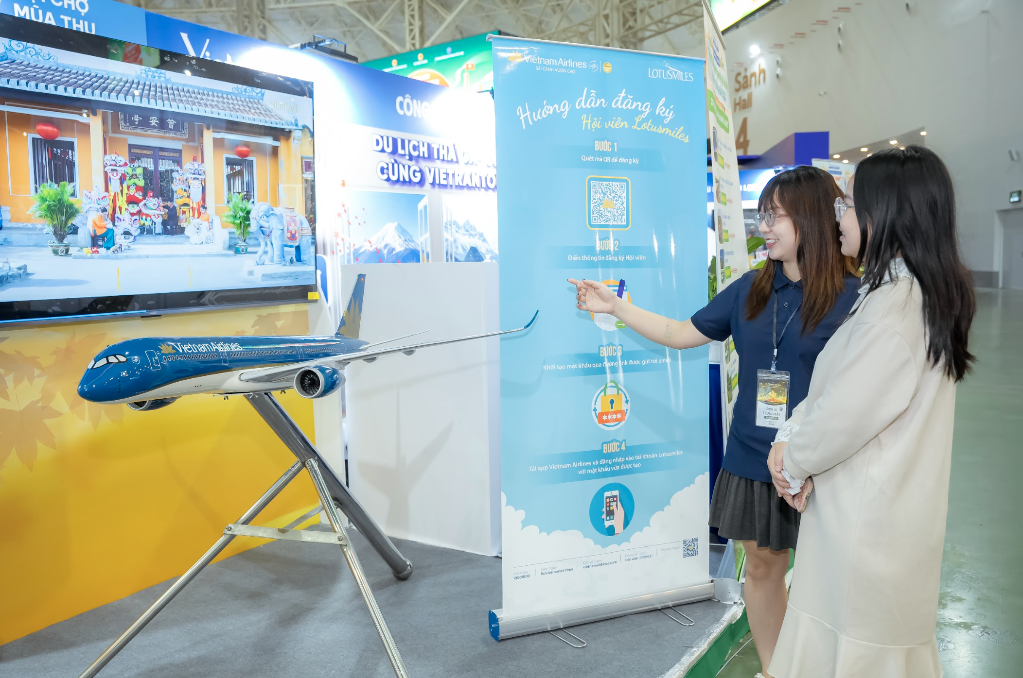 Tại đây, Vietnam Airlines giới thiệu các sản phẩm và dịch vụ chuẩn dịch vụ 5 sao, chương trình khách hàng thường xuyên Lotusmiles, cùng mini game “Bay cùng VNA – Khám phá Việt Nam” mang đến trải nghiệm tương tác số trẻ trung, sôi động.