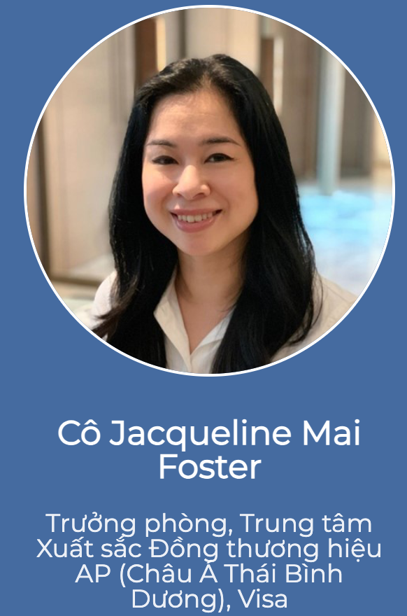 Trong khi đó, từ lĩnh vực tài chính, Visa sẽ mang đến góc nhìn sắc bén thông qua bà Jacqueline Foster, Giám đốc Tối ưu hóa Thẻ đồng thương hiệu khu vực Châu Á – Thái Bình Dương. Với hơn 20 năm kinh nghiệm trong ngành tài chính – marketing, từng giữ vị trí quản lý cấp cao tại HSBC, National Australia Bank và nhiều tổ chức quốc tế, bà Jacqueline là một trong những gương mặt tiêu biểu của Visa trong lĩnh vực phát triển khách hàng thân thiết.