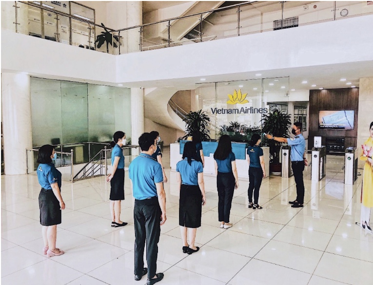 Để đảm bảo đảm sức khoẻ cho bản thân và cộng đồng, chúng tôi luôn thực hiện các biện pháp an toàn nơi công sở, nâng cao tinh thần và trách nhiệm đối với cộng đồng. Mỗi nhân viên đóng góp vào công tác phòng dịch thông qua những hoạt động nhỏ nhưng mang ý nghĩa lớn: tự trang bị nước rửa tay, khẩu trang, đo thân nhiệt mỗi ngày, sát khuẩn khu vực làm việc,… để vừa thực hiện sứ mệnh kết nối hàng không, vừa bảo vệ bản thân, cộng đồng trước dịch bệnh.