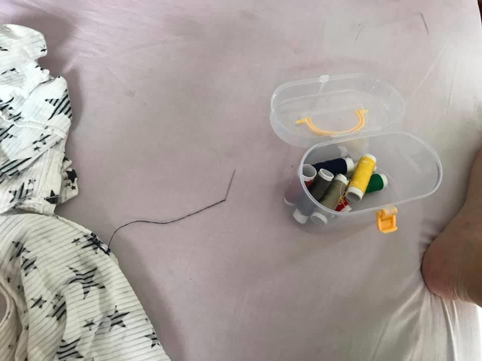 Tự khâu lại áo bị rách của con trai. (Ảnh: NVCC).