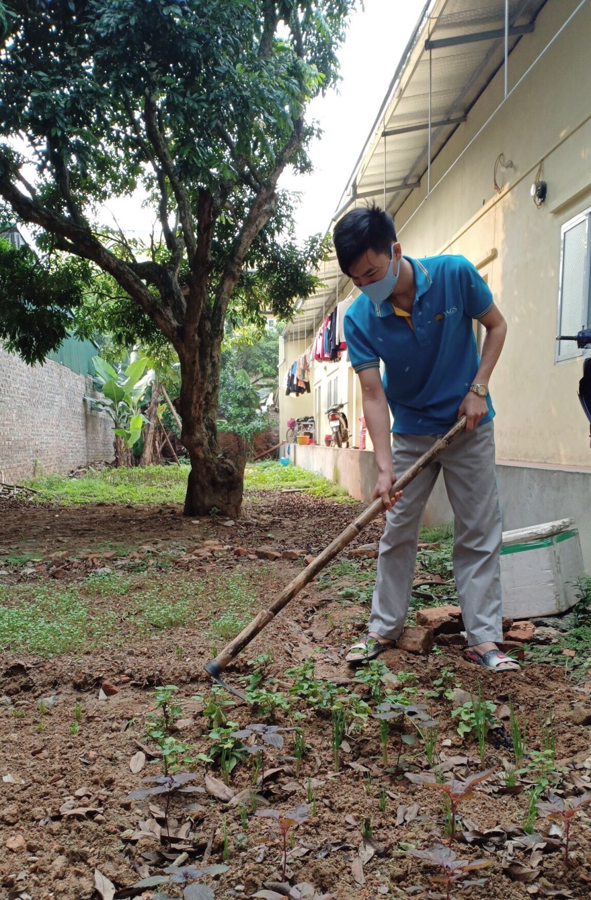 Trong thời gian đại dịch Covid-19 đang hoành hành với diễn biến vô cùng phức tạp, mặc dù tình hình công việc của 2 vợ chồng rất bấp bênh, hơn nữa lại vừa có thêm thành viên mới song anh không hề nản chí. Anh đã dành khoảng thời gian cùng gia đình tăng gia sản xuất trồng thêm vườn rau xanh vừa để phục vụ bữa ăn cho gia đình vừa tạo niềm vui cho chính mình.