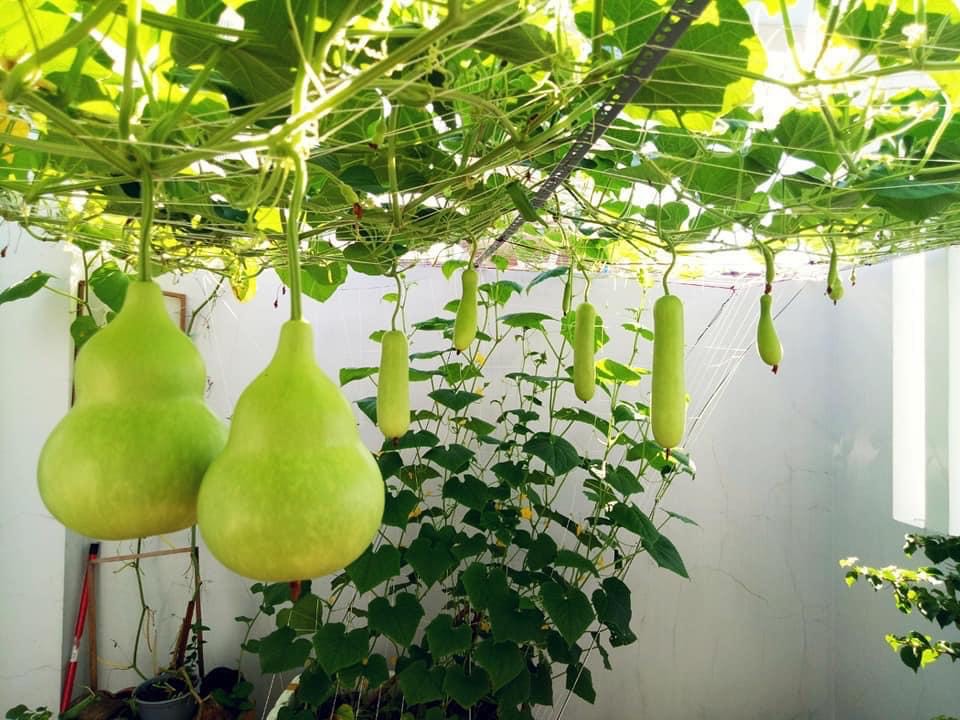 Giàn bầu bí đơm trái. (Ảnh: NVCC)